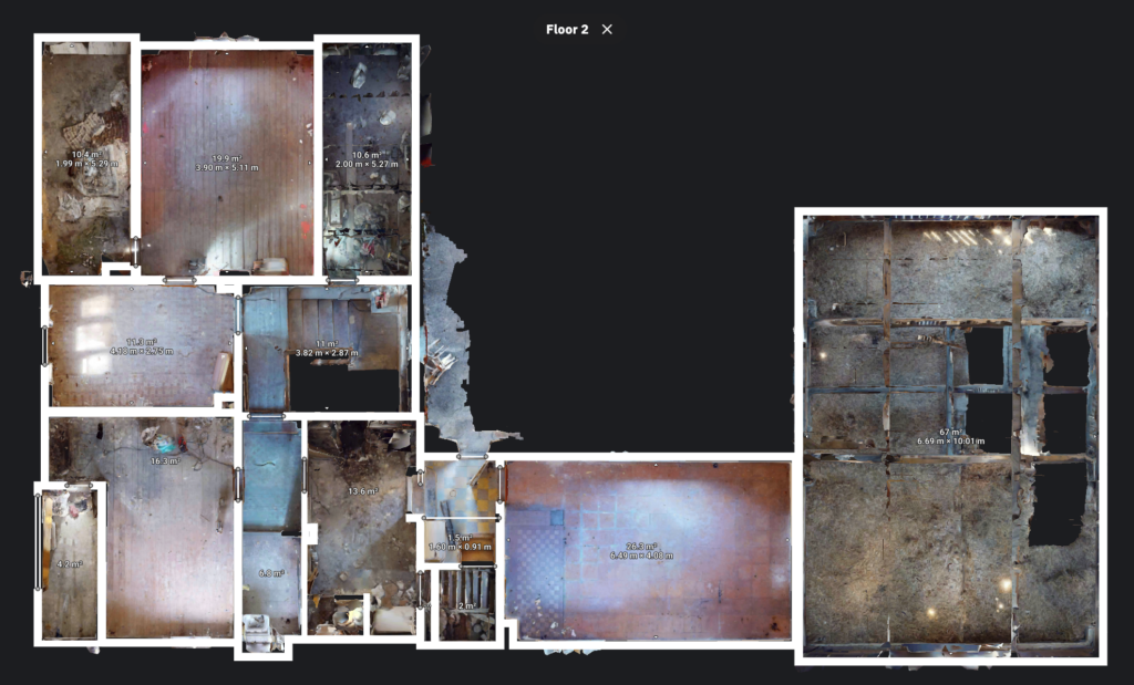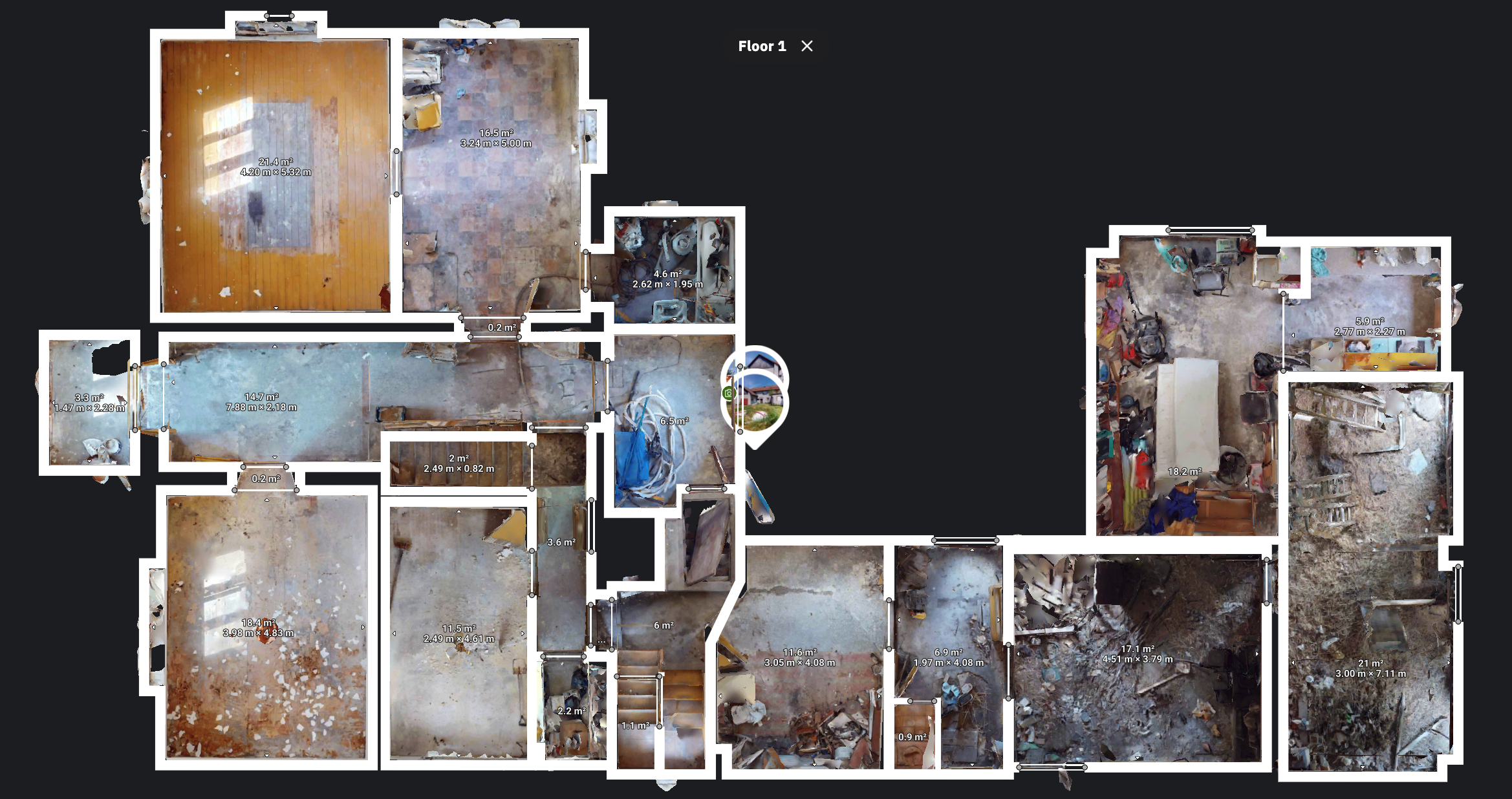 Dispozice nemovitosti je poměrně komplikovaná a celá nemovitost je určena ke kompletní rekonstrukci. Proto jsme připravili virtuální prohlídku, kde bylo možné projít si celou nemovitost z pohodlí domova, zobrazit si půdorysy a promyslet si možnosti rekonstrukce této rozsáhlé nemovitosti.